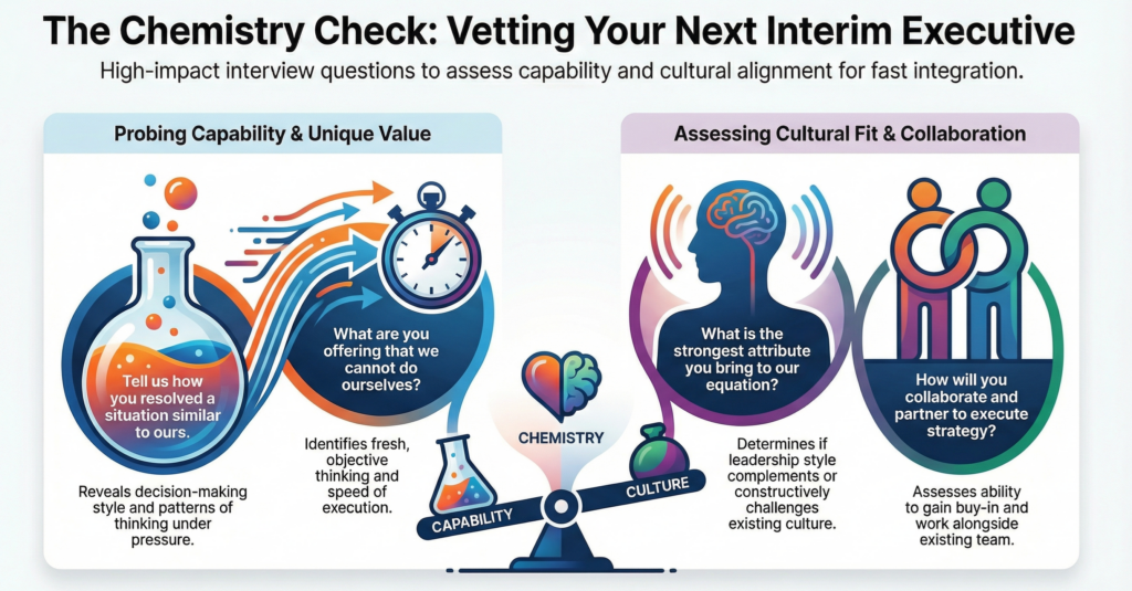 Seasoned interims are selective. They listen closely to the questions being asked—and often interpret them as signals of whether the organization is truly ready to support and implement meaningful change.