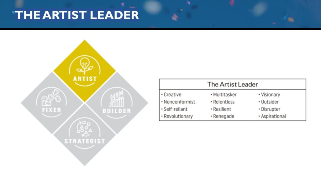 The Artist leader is a renegade wired for decision-making rooted in innovation, ingenuity, revision, and revolution.